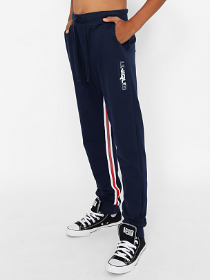 Джемпер с длинным втачным рукавом. Низ изделия и рукава обработаны поясом и манжетами из полотна с эластаном. Рукава декорированы вязаными лампасами. Перед декорирован принтом с эффектом "Высокая база" "УНИКАЛЬНЫЙ". Брюки с притачным поясом и манжетами. В пояс вставлена резинка и функциональный шнур. Пояс и манжеты выполнены из полотна с эластаном. На передней части брюк расположены карманы с подрезным бочком. Шаговые швы декорированы вязаным лампасом. Передняя половинка брюк декорирована принтом с эффектом "Высокая база" "УНИКАЛЬНЫЙ".
